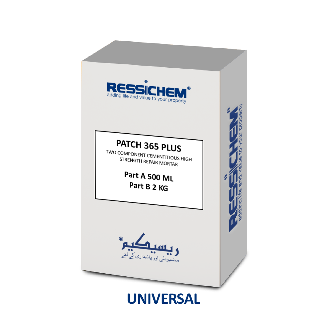 Patch 365 Plus is a two-component dry premix repairing mortar useful for the repairing of old deformed plaster works, damaged floor screed with potholes and concrete where surface honeycombing has occurred. It is also highly recommended for the use in refurbishment & renovation works. Patch 365 Plus is extremely useful for areas where high strength, water resistivity and some flexibility is required in the mortar