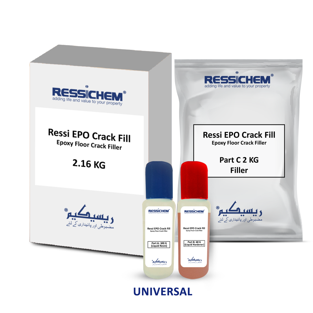 Ressi EPO Crack Fill is a three-part solvent free epoxy system based on bisphenol A based Resins and modified polyamide-based hardeners. This versatile crack filler is designed to fill hairline and thick cracks up to 12mm in concrete floors in a single layer, Multiple layers can be applied. This is an impact resistant epoxy crack filler that can be applied from feather edged trowel at a thickness of several inches in multiple layers. Ressi EPO Crack Fill is also suitable for a variety of substrates such as metal, wood, ceramic, concrete, textile, glass, leather etc.