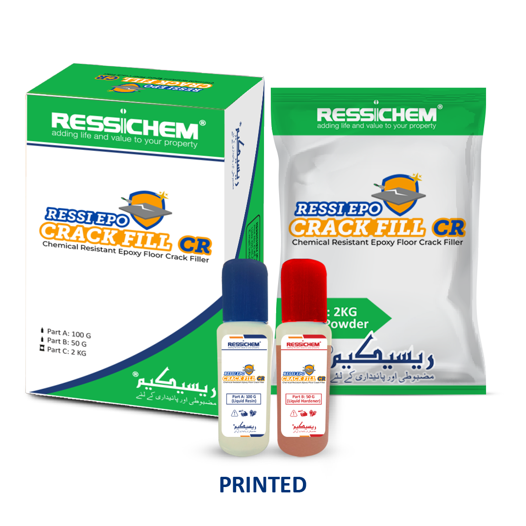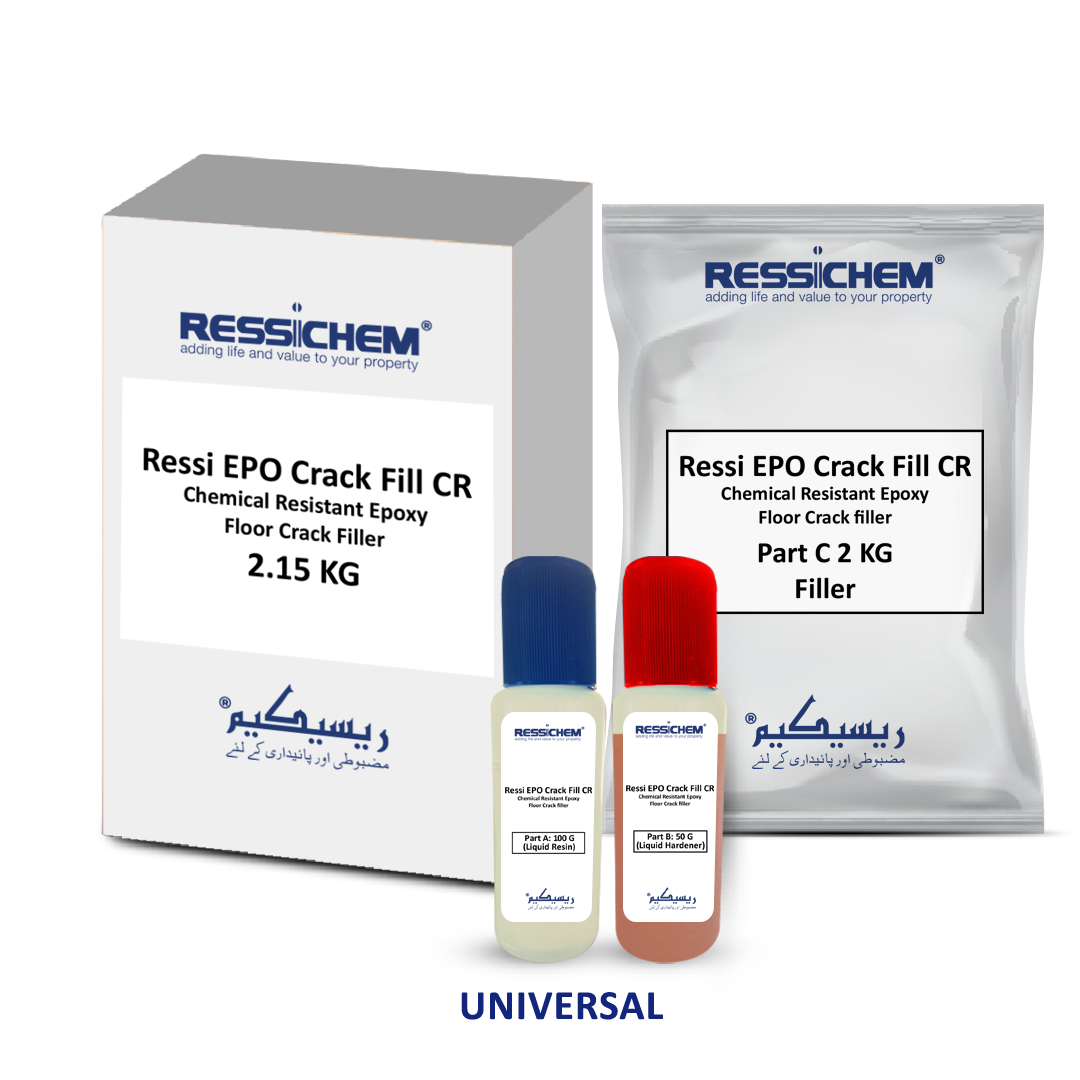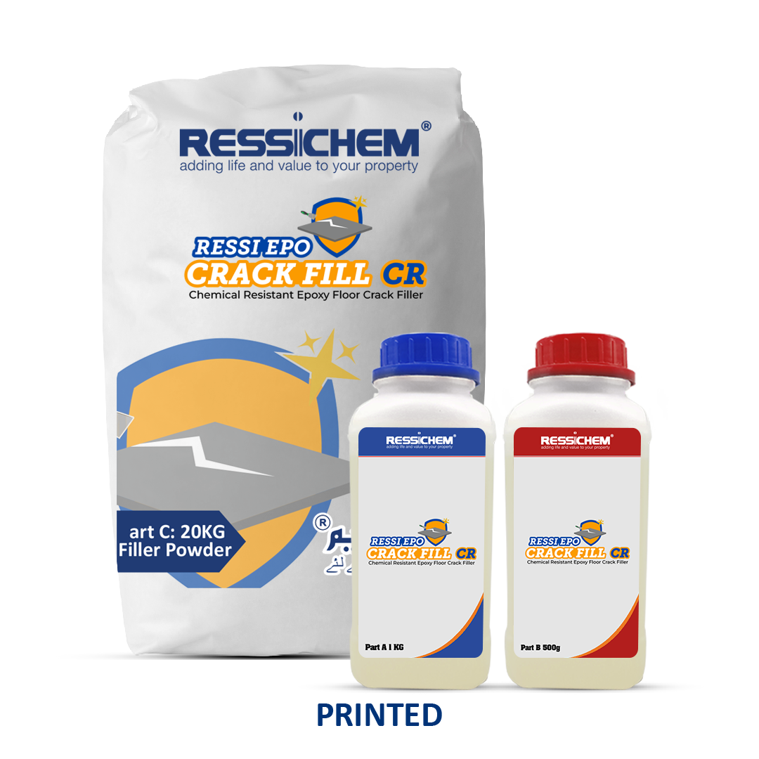 Ressi EPO Crack Fill CR is a three-part solvent free chemical resistant epoxy-based crack filling material designed to fill both hairline and deep cracks within the concrete surface especially suited for concrete and cementitious floorings. It is specially formulated using specialised Bisphenol A based Resins and modified cycloaliphatic amine-based Curing agents which are free from nonyl phenol and give its special chemical resistant properties. It can also be used with other materials such as metal, fiberglass, wood and many other compatible substrates. A variety of tools like trowels and other materials can be used to apply this material.