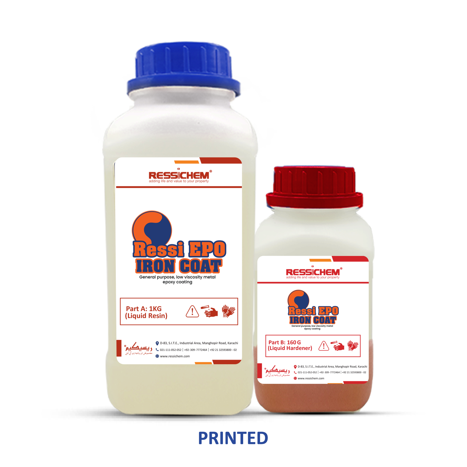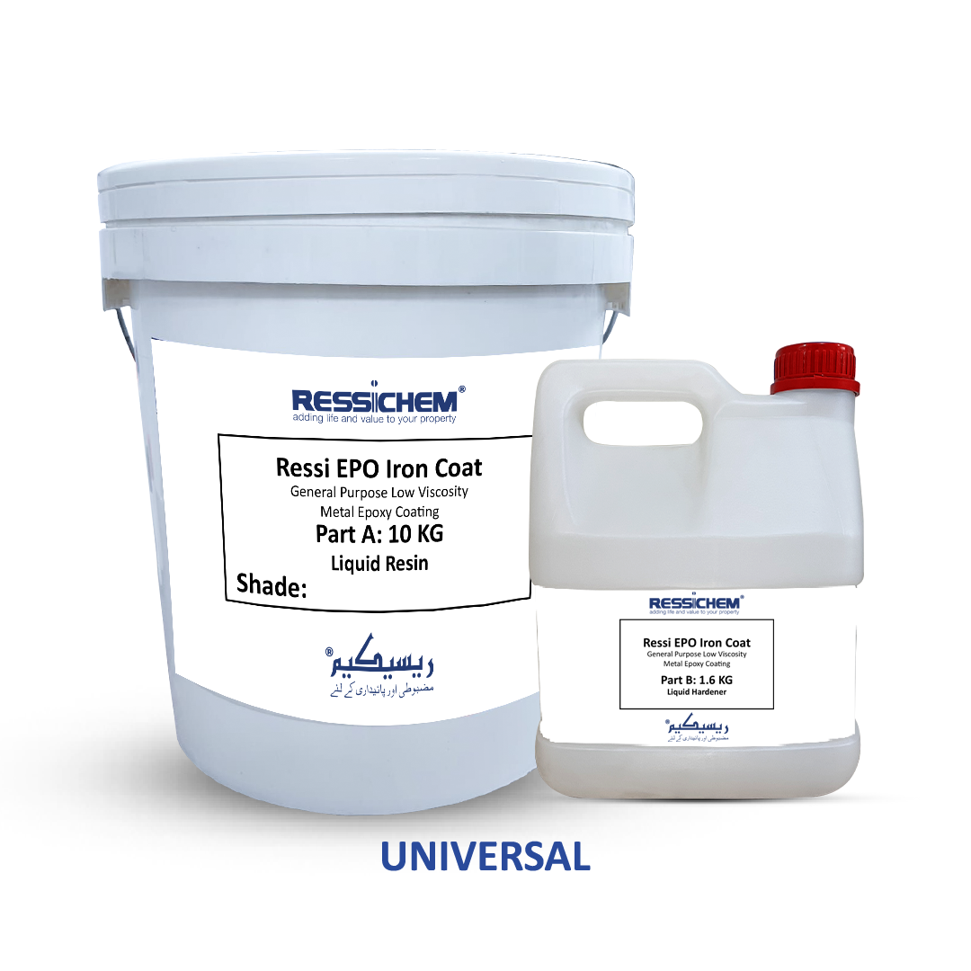 Ressi EPO Iron Coat is a solvent-loaded, low-viscosity, UV-stable metal protective coating specifically designed for application over metal surfaces. It is formulated with diluted Bisphenol A-based resins and polyamide-based hardeners, ensuring durability, abrasion resistance, and protection against mild acid exposure. This pigmented coating is ideal for exposed metal structures requiring enhanced weathering resistance and long-term performance.