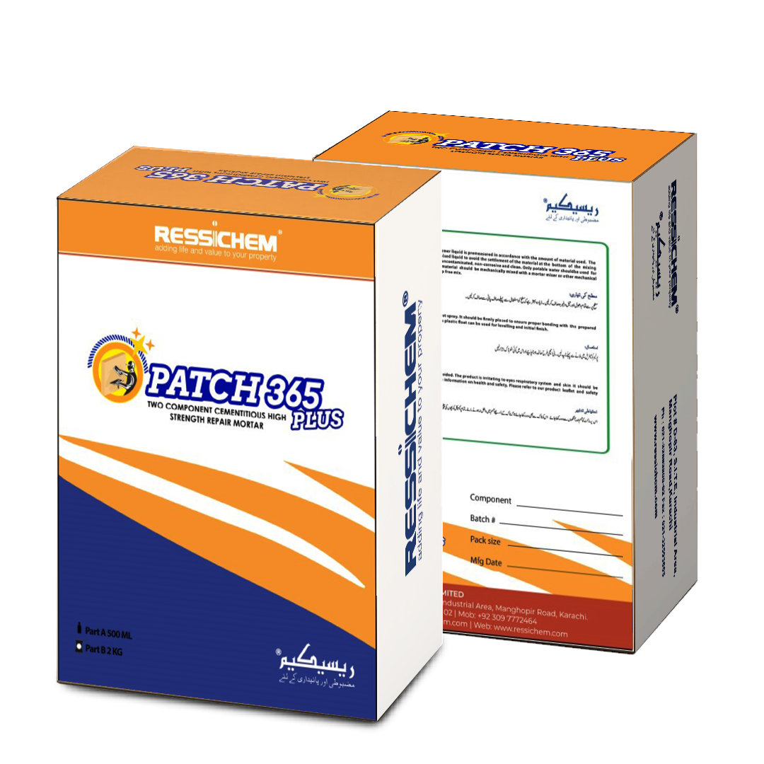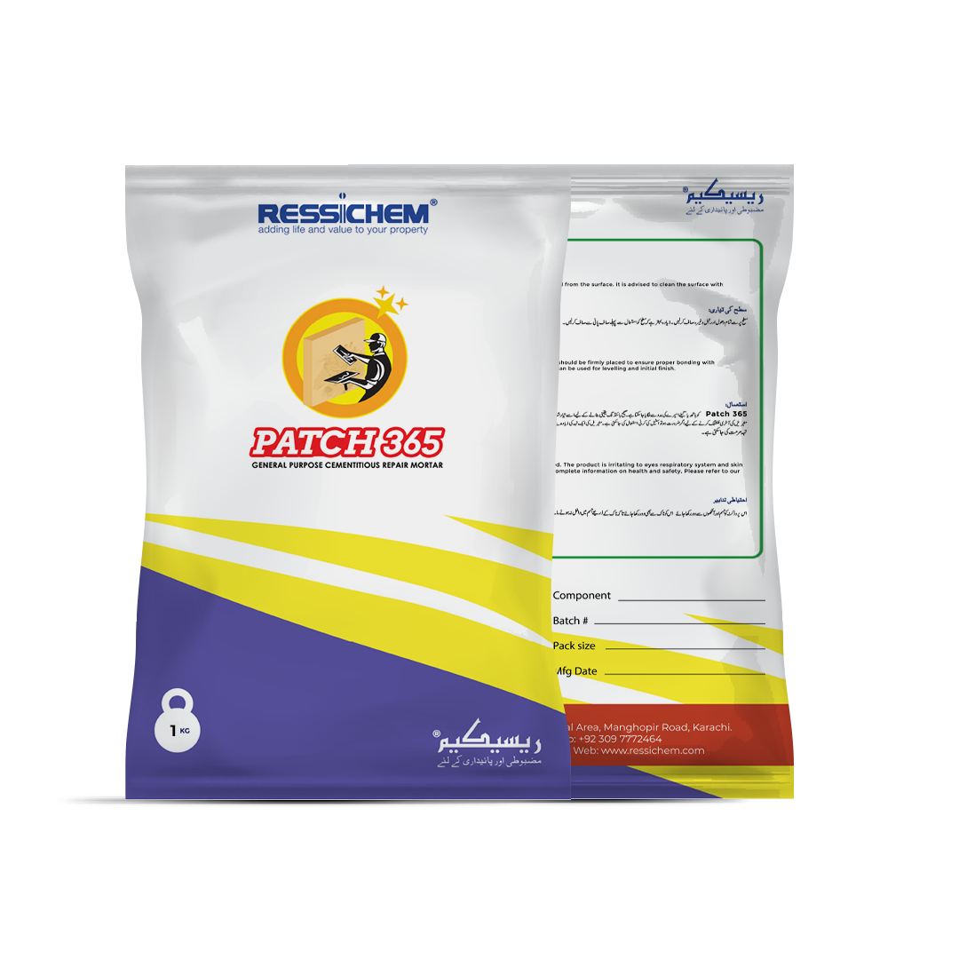 If there are no chamfers on the roof slab they should be made. In case the chamfers have been damaged; they should be repaired accordingly using wither Patch 365 Plus or by the addition of Ressi SBR 5850 in the cement sand mortar used to make the chamfer. It is recommended to add 1 Ltr of Ressi SBR 5850 for every 50 KG Bag of cement used in the casting and making of the chamfer.