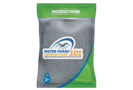 Water Guard Crysta Coat 101 is a cementitious slurry waterproofing system by crystallization. The active chemicals in the applied Water Guard Crysta Coat 101 reacts with the free lime and moisture present in the capillary track in the concrete to form an insoluble crystalline complex. The crystals block the capillaries and minor shrinkage cracks in the concrete to prevent any further water ingress. Water Guard Crysta Coat 101 Coat 101 can be used for various concrete elements in structures including underground tank raft and retaining walls.