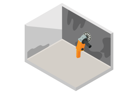 It is essential to remove all the Plaster, loose materials and non-cement-based plaster over the concrete surface which has been affected. It is also essential to thoroughly keep the surface slightly moist prior to application of Water Guard Crysta Coat 101. The preparation of the surface should extend at least one meter over the sign of leakage. All surfaces should be saturated with water prior to application.